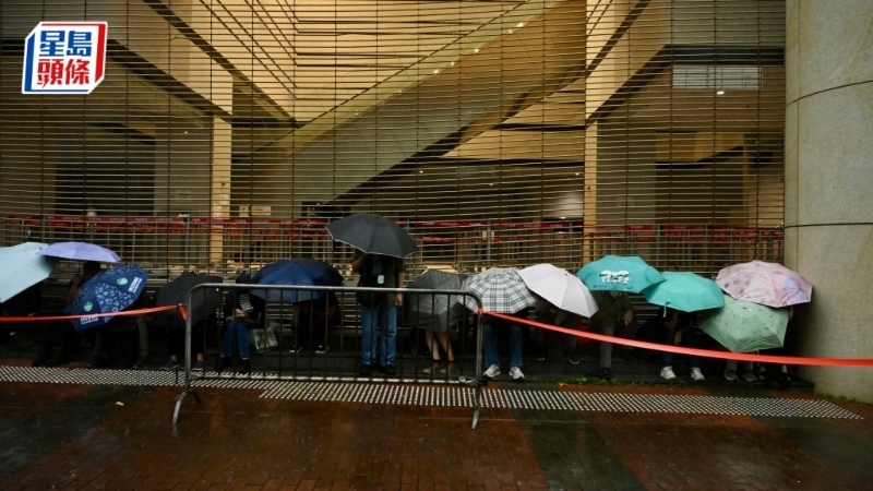 壹傳媒創辦人黎智英與《蘋果日報》三間相關公司涉串謀勾結外國勢力案,原定今(14日)踏入第147日審訊,正式展開控辯雙方結案陳詞階段。大批市民已由本周三起排隊輪候入場聽審,記者亦已在凌晨3時起排隊“霸位”等候,以爭取入正庭聽審。市民在紅雨生效時撐傘爭相到法院范圍避雨,而天文臺在上午7時50分發出黑色暴雨警告信號,司法機構亦在7時59分公布今日上午所有法院和審裁處聆訊會延期,盡管天氣惡劣,仍有逾百名市民及記者繼續冒雨撐傘在法院外排隊,但求爭取一席位入庭旁聽。