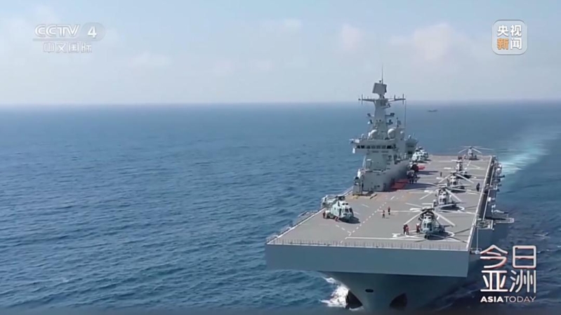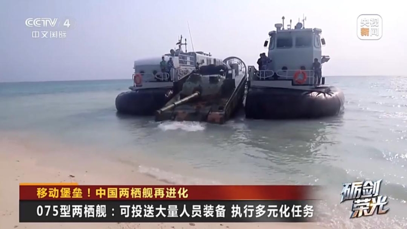 軍事專家梁芳:075型兩棲攻擊艦應該說是我們海軍裝備建設的一個革命。為什么我們一定要發展兩棲攻擊艦?未來海戰場情況非常復雜,比如說在灘頭海岸,敵方經常會設置很多的障礙,所以靠平面登陸會影響非常大。我們現在有了垂直登陸,就可以直接跨越淺灘、直接打入敵方的縱深,大大減少了傷亡;其次,能夠快速進行戰略投送。發展這型裝備的重要性在哪里呢?除了航母,包括055大驅之外,它也可以作為一個指揮艦;同時它跟航母搭配的時候是一個混合編隊,它既可以攻擊、又可以投送,一艦多能。