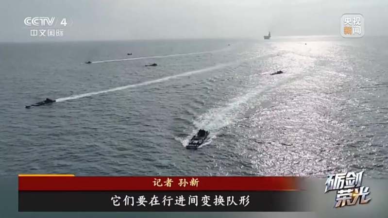 隨著安徽艦尾門緩緩打開,作為開路先鋒的兩棲“野馬”氣墊登陸艇搭載著兩棲裝甲裝備,在茫茫大海上高速突擊,迅速向岸灘發起沖鋒。緊接著,裝甲戰車出動搶灘。