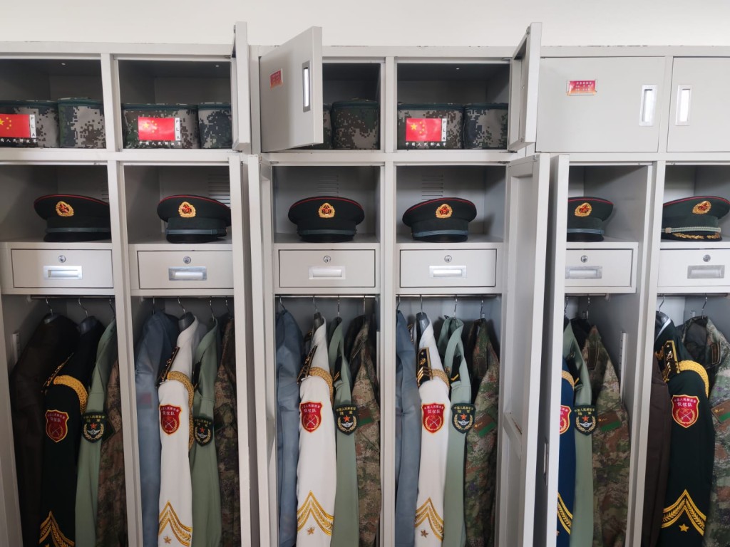 解放軍儀仗隊宿舍亦開放供記者參觀。寢室內不僅被褥都是標準的“豆腐塊”,衣物和起居物品也是整齊劃一。每名官兵的衣物柜中均按同樣順序擺放禮服、軍常服和迷彩服等,床下柜子則是擺好馬靴。