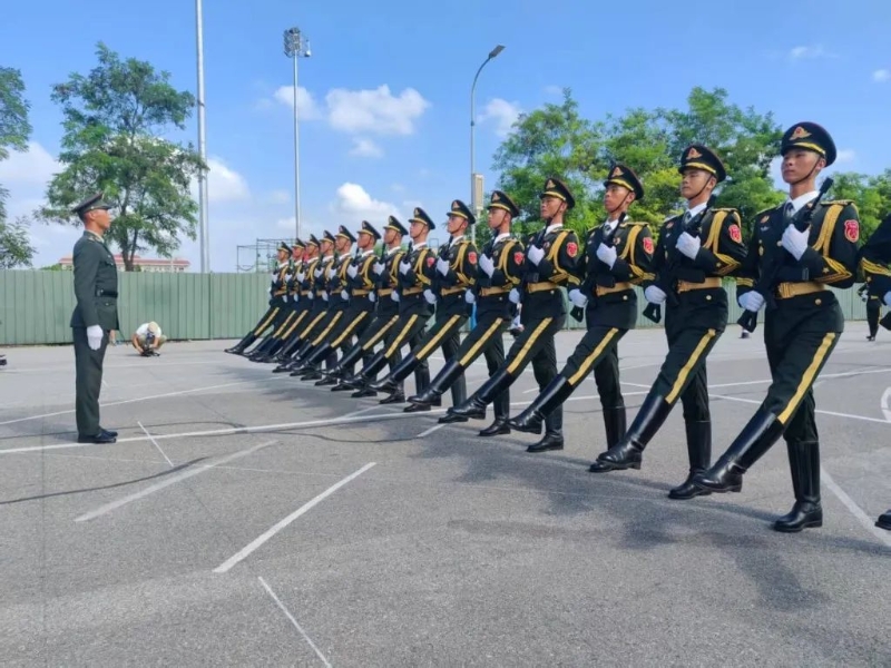他們身著筆挺軍服,以排面為單位進行隊列訓練,動作“六線合一”(頭線、手線、槍線、腿線、胸線、帽線),氣勢威武?,F場教官們略顯沙啞的口令聲此起彼伏,要求受閱官兵每個動作和表情都要做到無可挑剔。