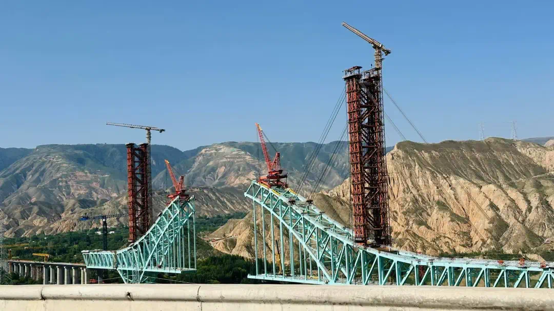 尖扎黃河特大橋位于黃南藏族自治州尖扎縣和海東市化隆回族自治縣交界處,是川青鐵路全線重點橋梁工程,主橋為141米+366米+144米的三跨連續鋼桁系桿拱橋,全長648米,被譽為“世界第一跨”鐵路連續鋼桁拱橋。是目前世界最大跨度的雙線鐵路連續鋼桁拱橋,也是我國第一座跨越黃河的鐵路鋼桁拱橋。
