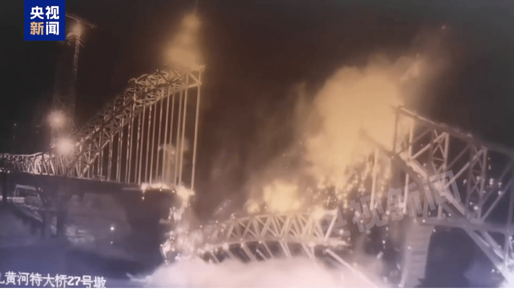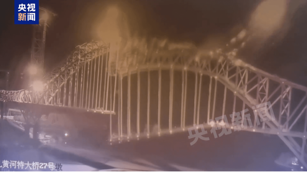▲央視新聞曝光尖扎黃河特大橋事故發生一刻的畫面。