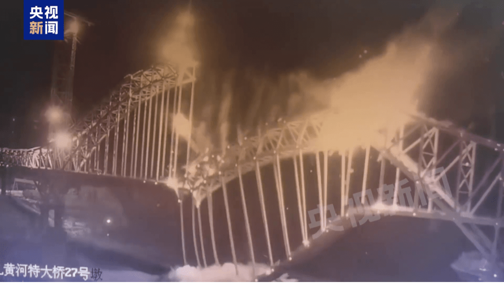 ▲央視新聞曝光尖扎黃河特大橋事故發生一刻的畫面。