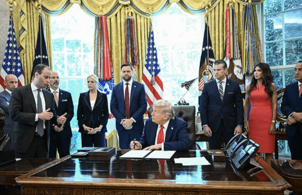 而就在幾分鐘前,威爾沙夫還站在特朗普身旁協助處理簽署流程,怎料一響手機,便成眾目睽睽下的“犧牲品”。