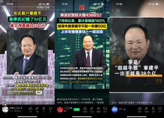 近期,因投資寒武紀暴賺數十億的杭州牛散“章盟主”章建平成為輿論焦點。