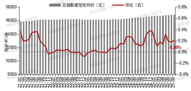 圖:2021年1月至2025年8月百城新建住宅價格及環比變化