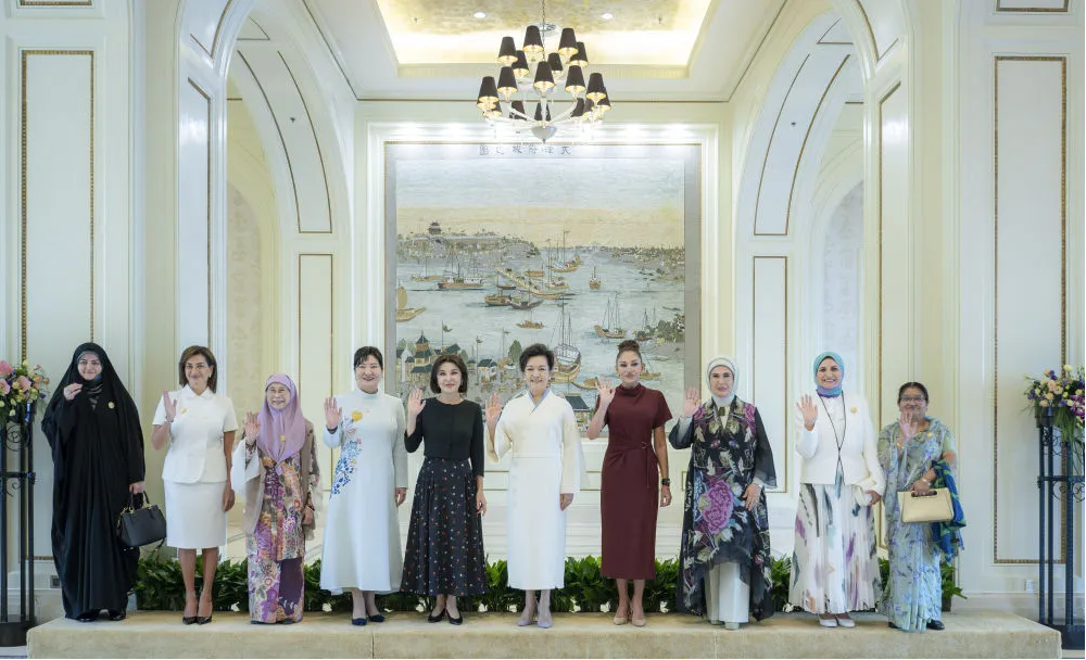 9月1日下午,國家主席習近平夫人彭麗媛邀請出席2025年上海合作組織峰會的外方領導人夫人等共同游覽天津海河。