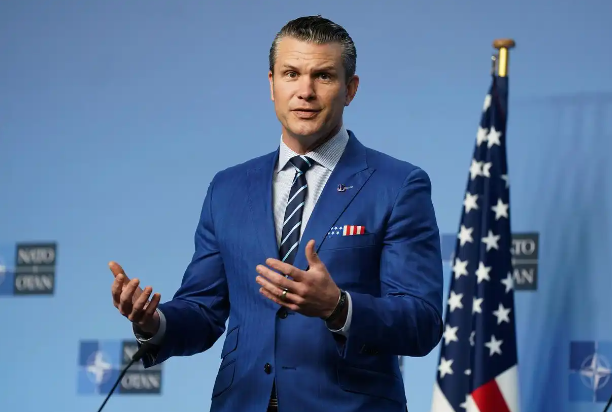 ▲美國國防部長赫格塞思在發布會上講話。新華社資料圖