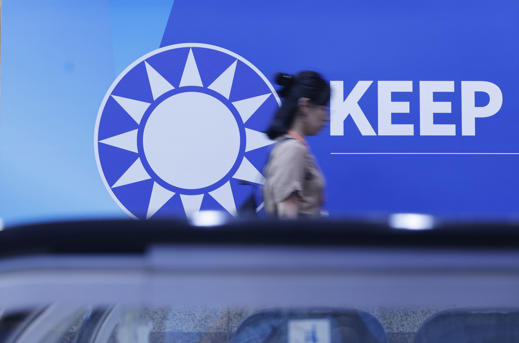 ▲圖為民眾經過國民黨黨徽。 中時資料照