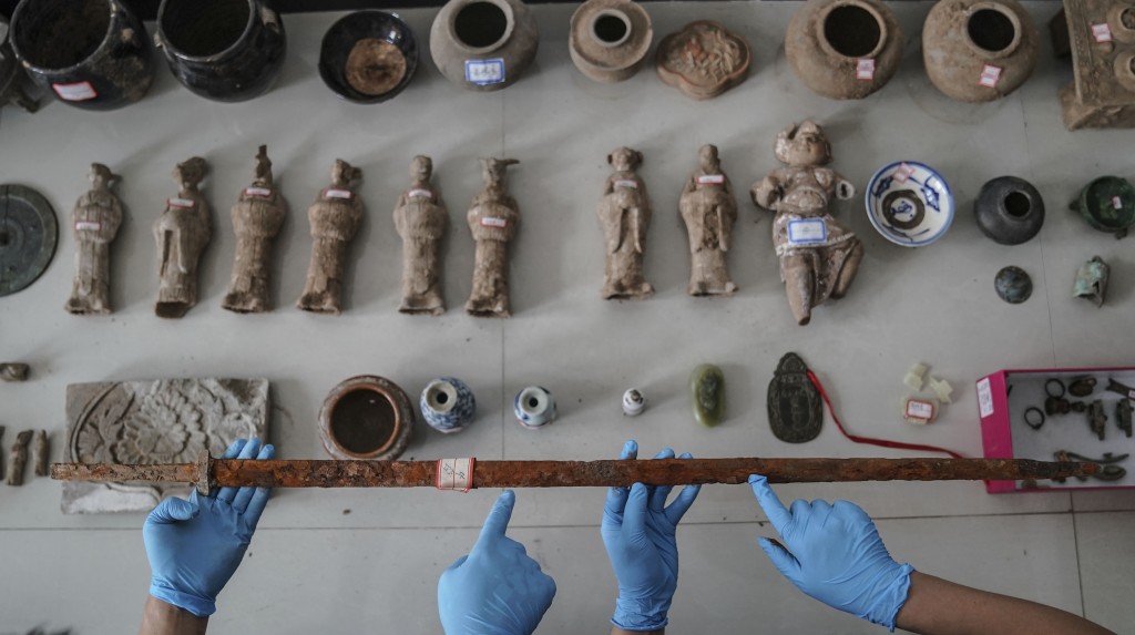 ▲警方不時破獲盜墓案,救回被偷走的文物。新華社