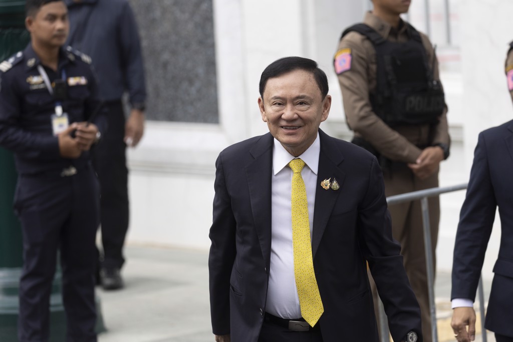 ▲76歲的他信要入獄服刑,他早前在曼谷最高法院宣判前露面。美聯社