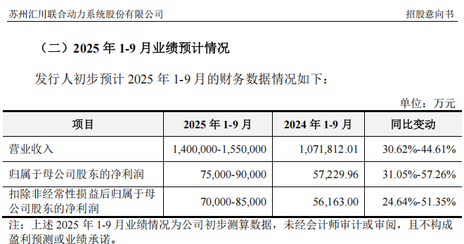 聯合動力預計,2025年前三季度,公司的營業收入為140億元至155億元,同比增長30.62%至44.61%;歸母凈利潤為7.5億元至9億元,同比增長31.05%至57.26%。