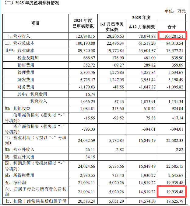 錦華新材預計,2025年全年,公司的營業收入為10.63億元,同比下降14.25%;歸母凈利潤為1.99億元,同比下降5.47%。