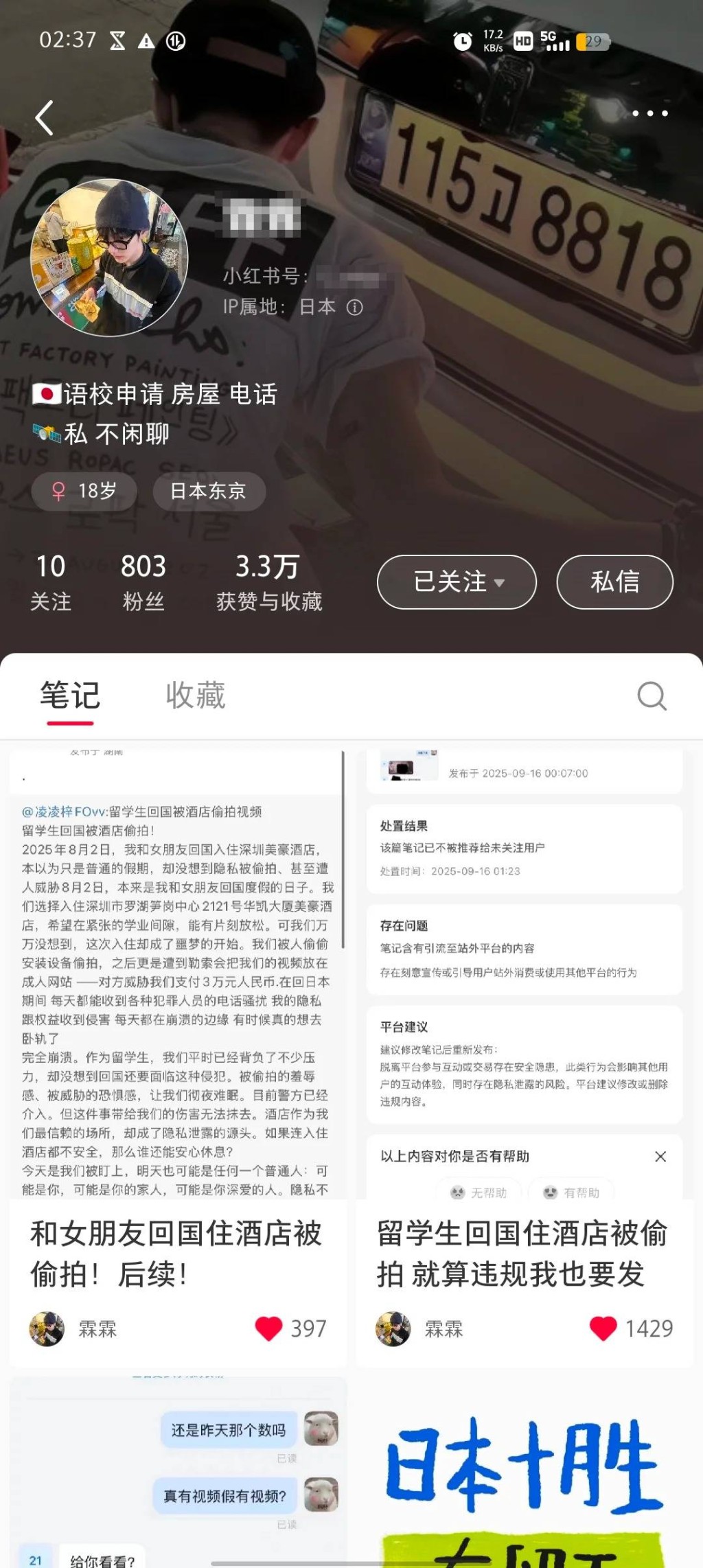 他在小紅書發帖指,9月初收到神秘短信,指已偷拍他和女友在酒店的私密影片,要求付出3萬人民幣,否則便把親熱片放上成人網站,匪徒更將部份偷拍的截圖發給事主作威脅。