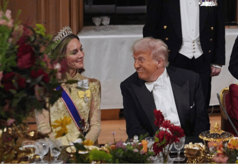 美國總統特朗普訪英期間,在溫莎堡出席國宴時,為凱特王妃(Princess Kate)拉椅的一幕,在社交媒體掀起熱議,相關片段在X(前稱Twitter)上短時間內瀏覽量突破21.7萬次。而他在席間“與別不同”地凝望凱特的照片亦引起關注。有網民認為,特朗普的舉動逾越禮儀界線,更令人聯想起他13年前曾發表針對凱特的不雅言論。