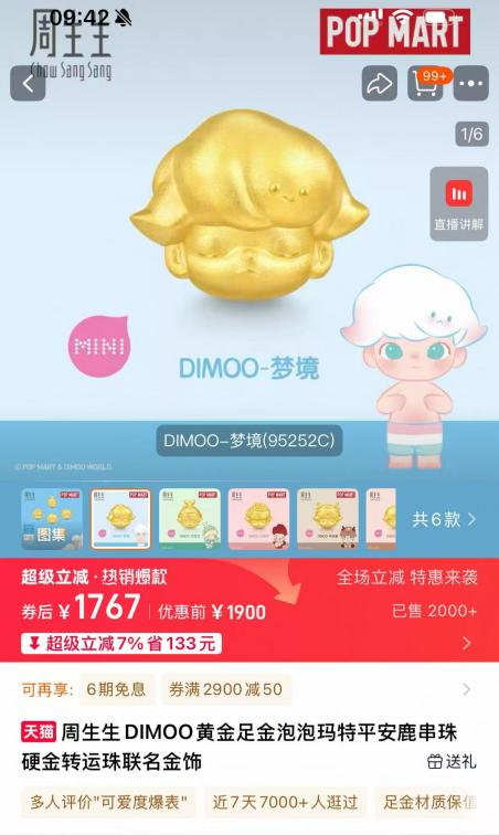 9月17日電商平臺顯示,“周游奇夢”系列仍然暢銷,六款足金吊墜月銷量均超過2000件。