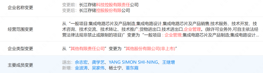 ▲長存集團工商信息變更,來源:企查查