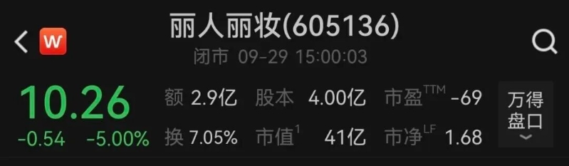 多年來,兩人如何分割股權,一直是外界關注的焦點。截至9月29日收盤,麗人麗妝跌5%,報10.26元/股,總市值41億元。