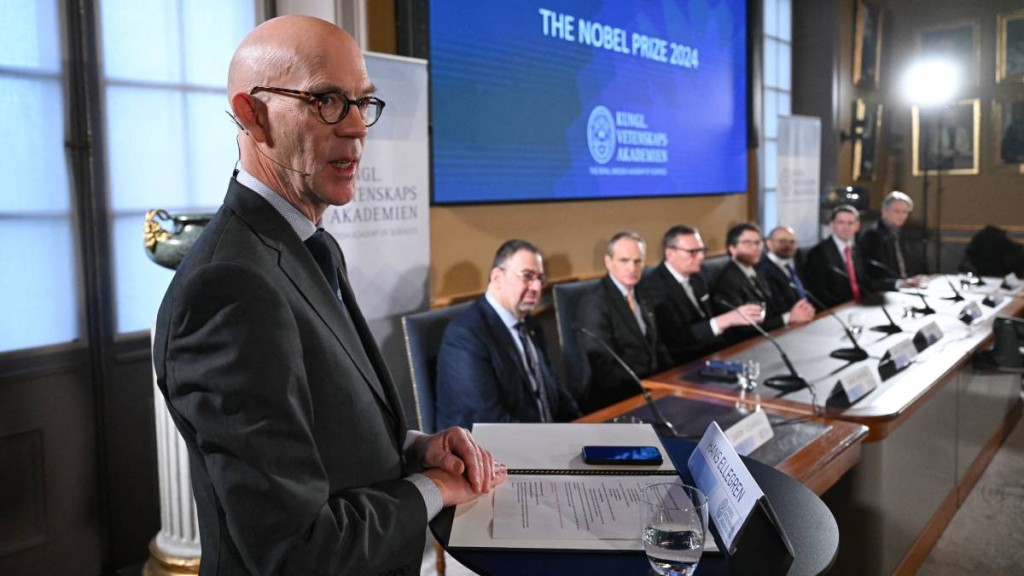 ▲負責頒發諾貝爾物理、化學及經濟獎的瑞典皇家科學院秘書長艾利格倫。法新社