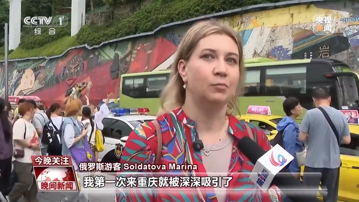 俄羅斯游客 Soldatova Marina:我第一次來重慶就被深深吸引了,后續肯定會邀請客人來重慶,因為重慶是一個非常有潛力的現代化大都市,不僅有美麗的自然風光,還有許多人文景觀。