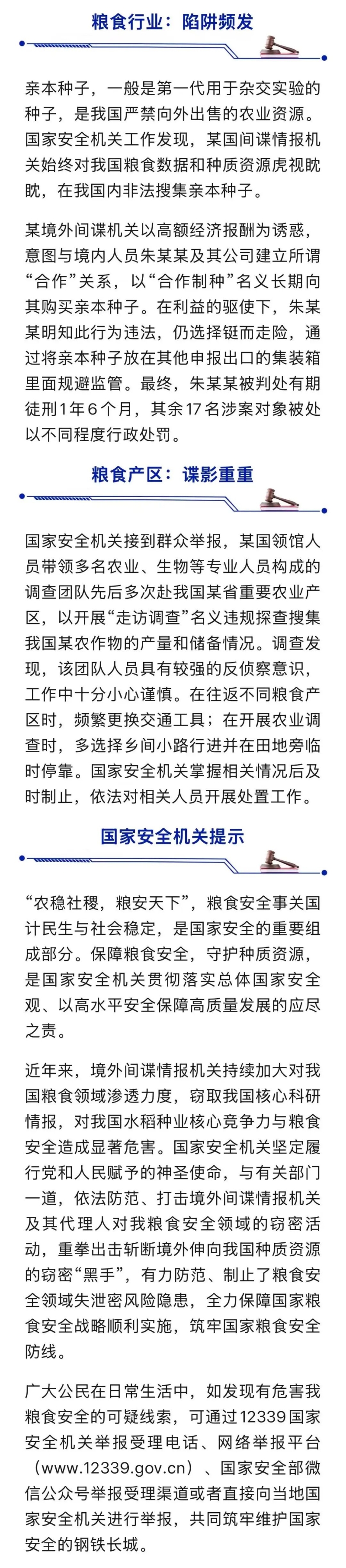 首頁>時事 間諜違法獲取中國大豆、玉米、水稻種子等農作物基因數據,國安部披露詳情 發布時間:2025-11-03 09:09 據“國家安全部”微信公眾號11月3日消息,種子是農業的“芯片”,種業安全關乎糧食安全與鄉村振興大局。近年來,境外間諜情報機關對我國糧食領域的滲透力度不斷加大,違法獲取我國大豆、玉米、水稻種子等農作物基因數據,給我糧食安全帶來嚴重危害。 來源︱新京報 編輯︱胡影雅 熱門文章 鄭麗文就職演說馬英九哭成這樣!黃暐瀚推測為這事 C929洲際大飛機就用它!中國自主CJ2000發動機公開亮相 APEC重臨中國,何以選深圳? 中國擬放寬芯片出口,全球車企“松一口氣”,荷蘭尷尬了 全國政協常委會閉幕 易綱不再任經濟委員會副主任 臺肥董事長李孫榮突遭撤換,吳音寧接任,“暗藏英賴2026布局” 鄭麗文喊“臺灣不是提款機”,臺作家看出國民黨2028大選主軸 “吉林一號”回應俯瞰臺灣:我們想拍哪里,就能拍到哪里 特朗普鎖定新目標,嗆“荷槍實彈”攻尼日利亞,下令戰爭部準備 中國駐韓國大使:中韓領導人會談幾乎翻了一倍的時間,談得非常好 專題 更多 >
