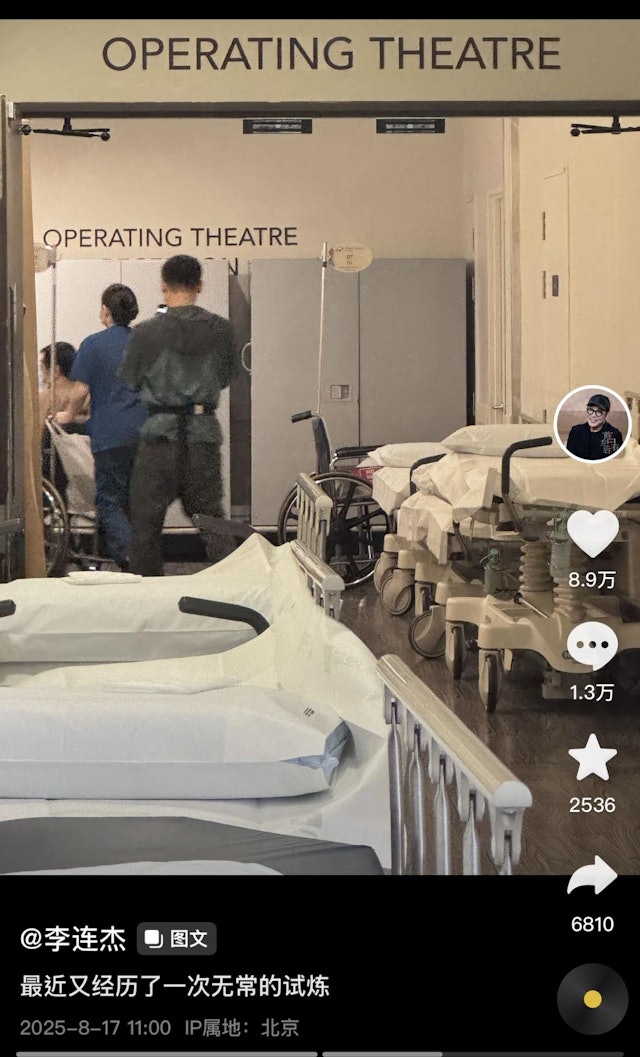▲李連杰日前自曝入院,坦言:“最近又經歷了一次無常的試煉”。