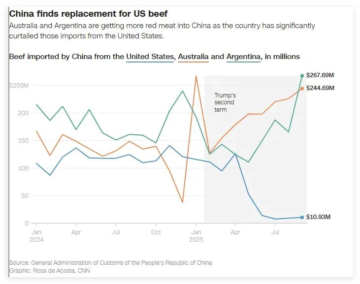 “中國不僅在實現出口多元化,同時也在增加從其他國家的進口量,以尋找美國商品的替代選擇,”CNN在報道中寫道。而在關注了這篇報道的國內外網民中,不少人都認為這 4 張圖表相當直觀地解釋了先前挑起爭端的美方,為何如今會對中國“停手”,并與中國進行建設性會談。