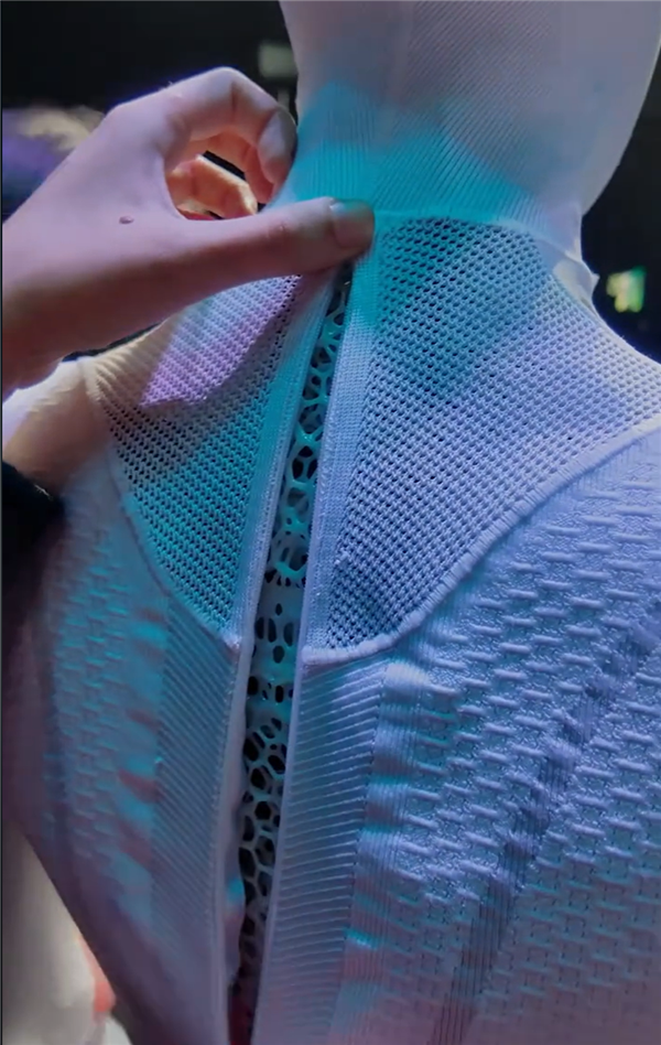 隨后,何小鵬讓團隊用一鏡到底的方式,再次展示Iron走路的過程。為打消網友質疑,員工還把Iron的上衣拉鏈解開,能夠明顯看到,里面都是骨骼支架,完全沒有人。