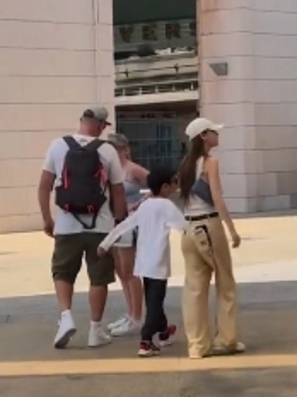 當天Angelababy打扮低調,灰色毛衣搭配闊腿褲,戴著帽子口罩遮掩身形,全程跟在“小海綿”身后整理物品。7歲的“小海綿”穿著同色系運動裝,熟練地牽著阿拉斯加犬的狗繩走在最前面。而那位身高頗為高大的神秘男子,則并肩走在小海綿身側,時不時彎腰與孩子交談,還順手接過“小海綿”遞來的零食袋,動作自然得不似外人。