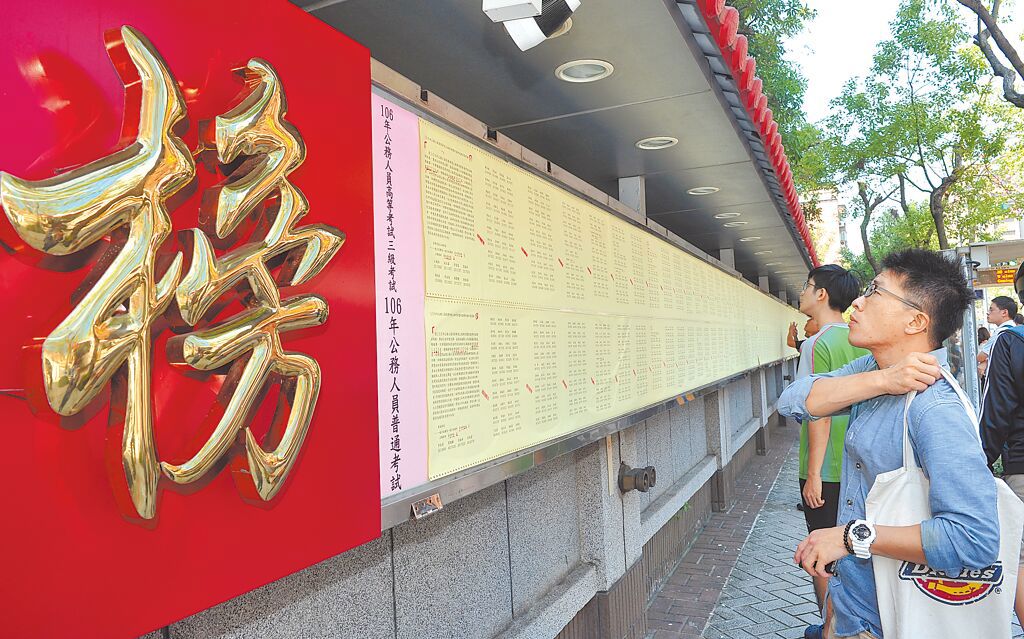 ▲圖為高普考考生站在榜單前查看。中時資料照片